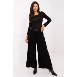 Elegantní látkové kalhoty s elegancí vhodné na každý den a do práce. Vyrobené z měkkého plátna s různorodou fakturou materiálu, poskytují výjimečný komfort a módní vzhled. Model má vysoký pas a široké nohavice, které se krásně přizpůsobují postavě, opticky ji zúžují. V pasu je vsazena elastická guma, zaručující pohodlné přizpůsobení, a zapínací pásek umožňuje dodatečné nastavení obvodu. Kalhoty nemají žádné zapínání, co zvyšuje pohodlí při nošení. Boční kapsy přidávají funkčnost a eleganci. To je skvělá volba pro ženy, které oceňují spojení elegance, pohodlí a moderního stylu.