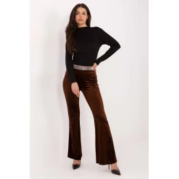 Welurové zvonové kalhoty jsou stylovým návrhem pro ženy, které milují kombinaci elegance a výrazného charakteru. Měkký, příjemný na dotek samet krásně padne na siluetu a hladký dominantní vzor dodává celku elegantního minimalismu. Přední část pasu je zdobena decentními flitry, které kalhotám přidávají výjimečný, párty akcent. Model má střední (regulérní) střih, který zajišťuje pohodlí při nošení a výhodně zdůrazňuje pas. Široké nohavice typu zvony opticky prodlužují nohy a zapadají do elegantních, zároveň trochu retro inspirací. Kalhoty nemají zapínání, což zvyšuje pohodlí při nošení. Vyrobené z polyesterové a viskózové směsi, jsou odolné, měkké a působí zvlášť efektně jak při pohybu, tak ve světle párty reflektorů. Jsou to ideální volba na slavnostní příležitosti, elegantní výstupy a párty, kdy chcete vypadat okouzlujícě a stylově.