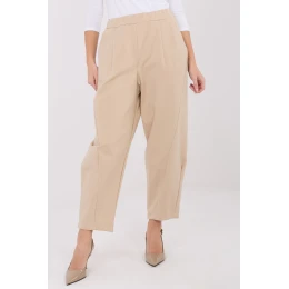 Pohodlné a stylové látkové kalhoty s casual charakterem, ideální na každý den a do práce. Vyrobené z směsi viskózy, nylonu a elastanu, poskytují pohodlí, pružnost a elegantní uspořádání materiálu. Hladký, jednolitý vzor je dělá univerzální a snadno kombinovatelný s mnoha styly. Model má vysoký pas, který krásně zdůrazňuje pas, a gumu v pasu zaručuje ideální přizpůsobení a pohodlí nošení bez nutnosti zapínání, kalhoty jsou bez zapínání. Sbíhavé nohavice přidávají siluetě lehkost a opticky ji prodlužují. Pro větší funkčnost jsou kalhoty vybaveny bočními kapsami, které zůstávají praktické a zároveň neporušují minimalistickou linii celého modelu. Pohodlné, praktické a stylové, ideální pro každodenní, moderní stylizace.