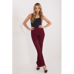 Elegantní ženské krajkové kalhoty jsou jedinečným modelem spojujícím styl a pohodlí. Vyrobené z směsi viskózy a elastanu, vynikají různorodou strukturou materiálu, která jim dodává jemně dekorativní charakter. Přímý střih typu straight leg a dlouhé nohavice vytvářejí nadčasovou a zúžující siluetu. V pase je vsazena elastická guma pro pohodlné přizpůsobení, a absence zapínání a kapes zdůrazňuje minimalistický, elegantní styl. Kalhoty mají podšívku v horní části, což zvyšuje pohodlí nošení a zajišťuje ideální uspořádání materiálu. Tento model se skvěle hodí jak na každý den, tak na slavnostní příležitosti nebo večírky, dodávajíc stylizaci eleganci a jemnost.