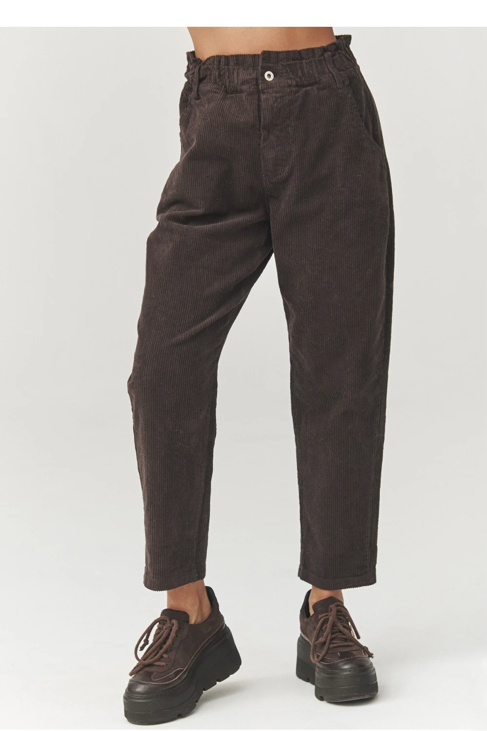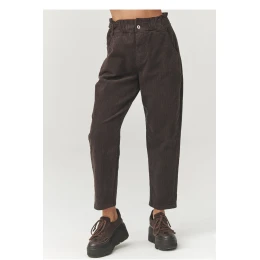 Elegantní ženské štručkové kalhoty v moderním, jednoduchém střihu jsou ideální volbou pro ženy, které ocení pohodlí a nadčasový styl. Vyrobené z měkkého, příjemného na dotek štruksu, krásně padnou na postavě a poskytují pohodlí po celý den. Model s vysokým pasem zdůrazňuje pas a opticky prodlužuje nohy, zatímco mírně zkrácené nohavice dodávají celku moderní charakter. Kalhoty se skvěle hodí jak do každodenních stylizací s teniskami, tak do elegantnějších outfitů s kotníčkovými botami nebo mokasíny. Vyrobeno v Itálii.