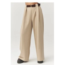 Vložte do svého šatníku špetku elegance a pohodlí díky našim širokým kalhotám s vysokým pasem a záložkami. Jedná se o skvělou volbu pro ženy, které ocení styl a pohodlí. Kalhoty jsou vyrobeny z vysoce kvalitní látky, která krásně padne a skvěle se hodí jak do každodenního nošení, tak i do formálnějších stylizací. Díky širokým nohavicím a decentním záložkám opticky prodlužují postavu, a ozdobný pásek s přezkou jim dodává moderní charakter. Skvěle se hodí ve dvojici s halenkou, sako nebo objemným svetrem. Jedná se o ideální model jak do práce, tak i na společenská setkání, vsaďte na univerzální, nadčasový střih a střízlivý barevný design, který nikdy nevyjde z módy. Vyrobeno v Itálii.