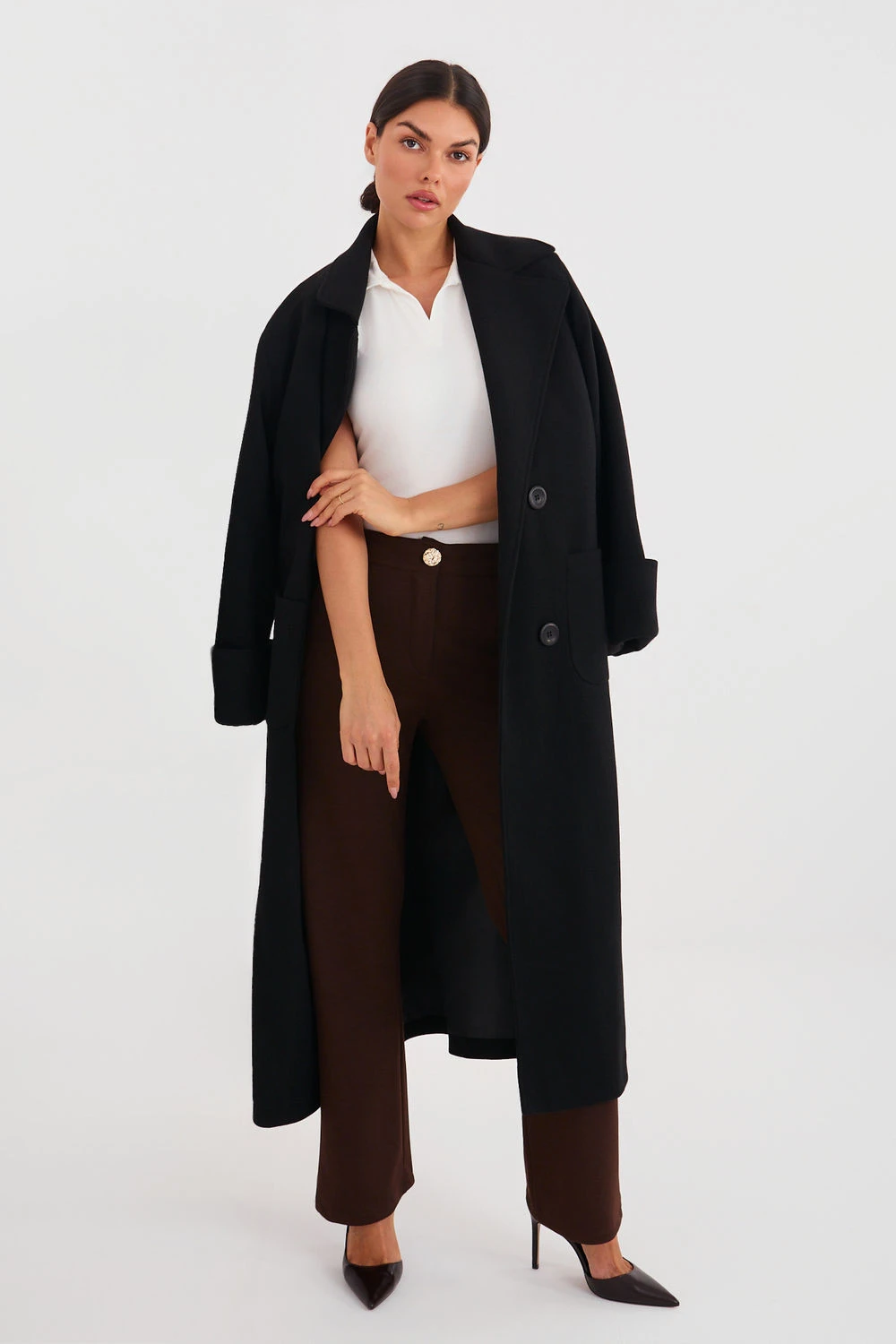 Elegantní dámské kalhoty materiálového typu straight leg, které okouzlují nejen vzhledem, ale i pohodlím nošení. Vyrobené z mimořádně příjemného na dotek materiálu typu "máslo" jemného a hladkého, poskytují luxusní pocit na kůži po celý den. Model s vysokým pasem krásně zdůrazňuje pas a opticky prodlužuje siluetu, zatímco rovné nohavice dodávají celku nadčasový, elegantní charakter. Kalhoty se zapínají na zip a knoflík, což zaručuje klasické a estetické provedení. Boční vložené kapsy přidávají funkčnost bez narušení linie střihu. Díky hladkému vzoru a pečlivě vybrané směsi polyesteru, viskózy a elastanu se kalhoty skvěle hodí do každodenních, pracovních i společenských stylizací. Jsou to univerzální základ elegantního šatníku, pohodlný, stylový a vždy aktuální.