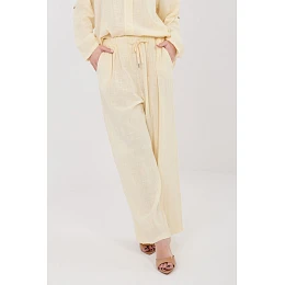 Elegantní dámské kalhoty s širokými nohavicemi, které spojují pohodlí s moderním uvolněným stylem. Model má široké nohavice, díky nimž poskytuje plnou volnost pohybu a skvěle zapadá do aktuálních trendů. Kalhoty jsou vyrobeny z vysoce kvalitní bavlny, která je měkká, prodyšná a příjemná na kůži, což z nich činí skvělou volbu pro každodenní nošení. Hladký vzor zdůrazňuje jejich univerzální charakter a usnadňuje sladění s mnoha styly. Model s vysokým pasem krásně zdůrazňuje postavu, a šňůrka v pase umožňuje pohodlné přizpůsobení siluetě. Další výhodou jsou praktické boční kapsy, které zvyšují funkčnost kalhot. Jedná se o skvělou volbu jak do každodenních, tak do elegantnějších outfitů.