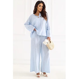 Elegantní dámské kalhoty s širokými nohavicemi, které spojují pohodlí s módním, uvolněným stylem. Model má široké nohavice, díky nimž poskytuje plnou volnost pohybu a skvěle zapadá do aktuálních trendů. Kalhoty jsou vyrobeny z vysoce kvalitní bavlny, která je měkká, prodyšná a příjemná na pokožce, což znamená, že se skvěle hodí k dennímu nošení. Hladký vzor zdůrazňuje jejich univerzální charakter a usnadňuje je sladit s mnoha styly. Model s vysokým pasem krásně zdůrazňuje pas, a šňůrkování v pase umožňuje pohodlné přizpůsobení siluetě. Další výhodou jsou praktické boční kapsy, které zvyšují funkčnost kalhot. Jedná se o skvělou volbu jak pro každodenní, tak i elegantní outfit.