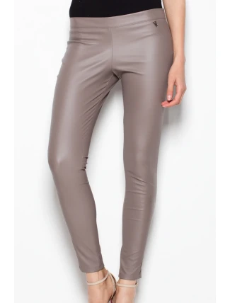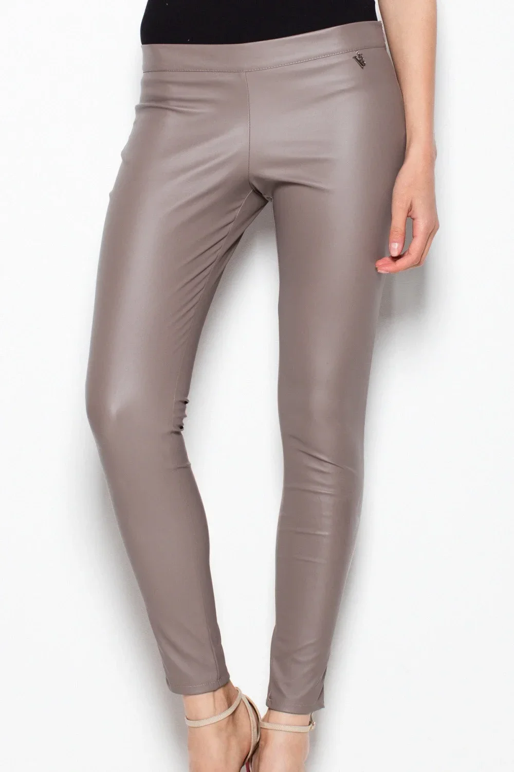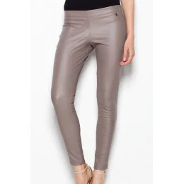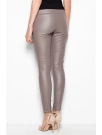 Elegantní kalhoty z imitace kůže. Model se štíhlýma nohama se zvýšeným stavem. Hladká přední část se zipem na boku.