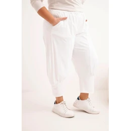 Dámské kalhoty Plus Size s nízkým sedem a gumou v pase bílé