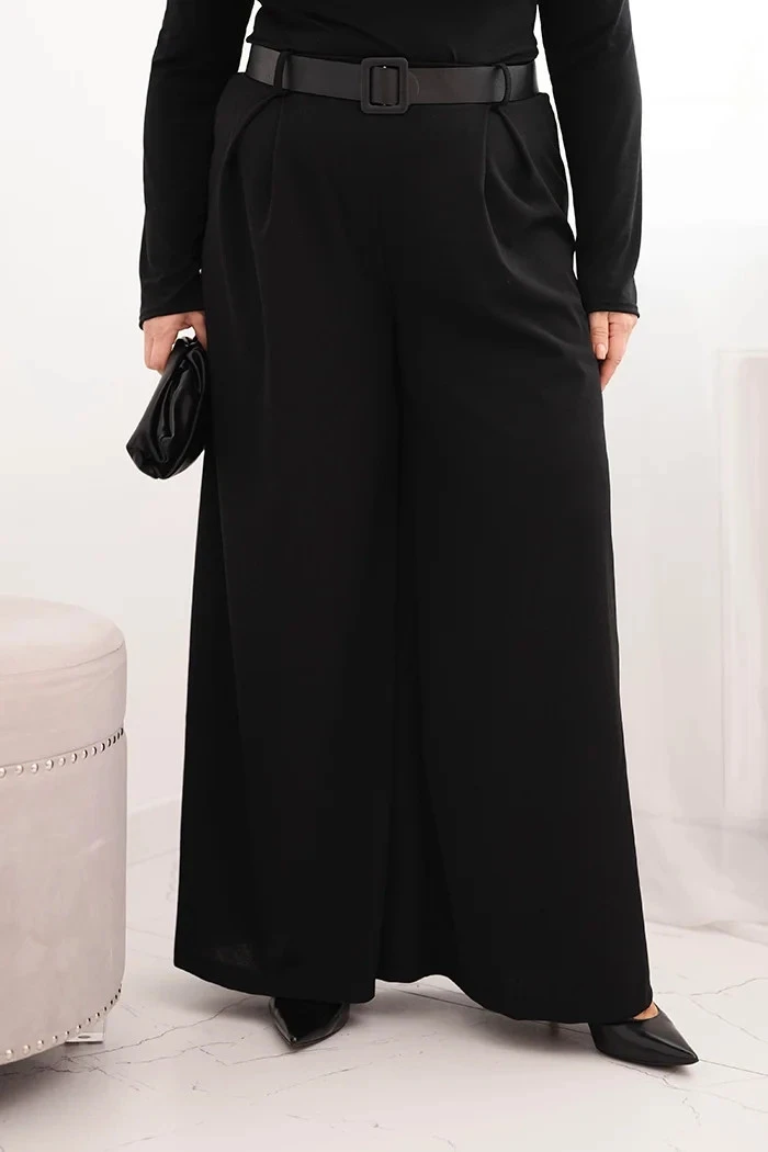 Dámské kalhoty Plus Size s širokou nohavicí a páskem černé