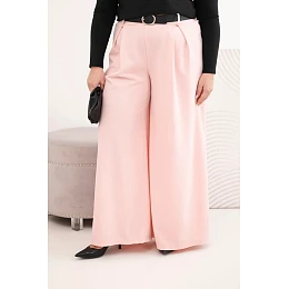 Dámské kalhoty Plus Size s širokou nohavicí a páskem pudrově růžové