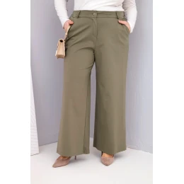 Dámské kalhoty Plus Size se širokou nohavicí a vysokým pasem khaki