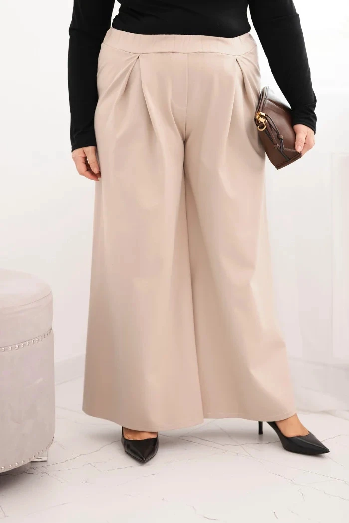 Dámské kalhoty Plus Size s širokými nohavicemi a plisováním béžové