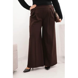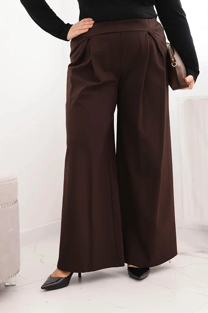 Dámské kalhoty Plus Size s širokými nohavicemi a plisováním hnědé