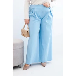 Dámské kalhoty Plus Size s širokými nohavicemi a plisováním modré
