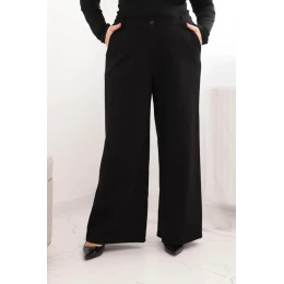 Tyto elegantní dámské kalhoty s širokými nohavicemi jsou vynikající volbou pro ženy, které ocení pohodlí a styl na každodenní nošení, do práce nebo na speciální příležitosti. Vyrobeny z měkkého materiálu s příměsí viskózy, zajišťují komfort nošení a volnost pohybu po celý den. Jejich klasický střih s elastickým pasem a knoflíkovým zapínáním zajišťuje dokonalé přizpůsobení postavě, zatímco široké nohavice dodávají lehkost a moderní vzhled.