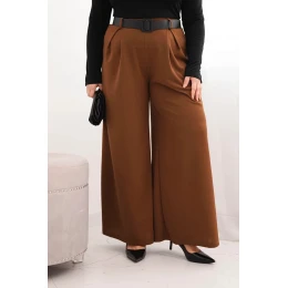 Dámské kalhoty Plus Size se širokou nohavicí a páskem čokoládové