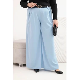Dámské kalhoty Plus Size se širokou nohavicí a páskem modré