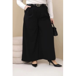 Dámské kalhoty Plus Size viskózové s širokou nohavicí a páskem černé