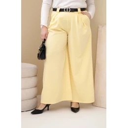 Dámské kalhoty Plus Size viskózové s širokou nohavicí a páskem žluté