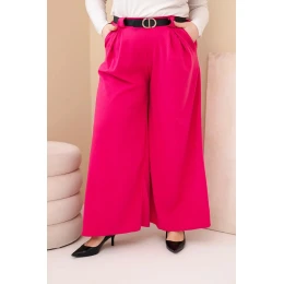 Dámské kalhoty Plus Size viskózové s širokým nohavicí a páskem fuchsie