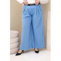 Dámské kalhoty Plus Size viskózové s širokým nohavicí a páskem modré