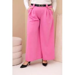 Dámské kalhoty Plus Size viskózové s širokým nohavicí a páskem růžové