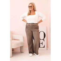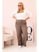 Dámské kalhoty Plus Size s širokou nohavicí a elastickým pasem hnědé