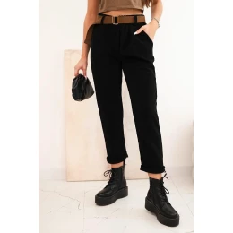 Vyšší pas opticky prodlužuje nohy a zvýrazňuje pas, a přiložený látkový pásek v kontrastní barvě dodává celku charakter. Skvěle se hodí jak k neformálním stylizacím s tričkem, tak i v elegantnější variantě s košilí a sakem. Elastický pas zajišťuje, že jsou nesmírně pohodlné na nošení po celý den.