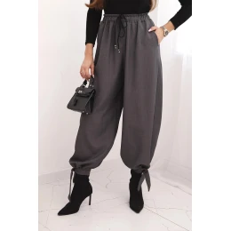 Dámské kalhoty s širokou nohavicí a zavazováním dole grafitové