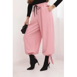Dámské kalhoty s širokým nohavicí a vázáním dole světle růžové