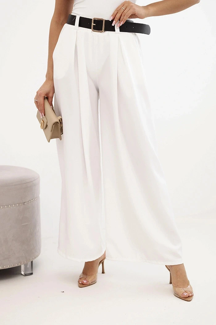 Dámské kalhoty s širokými nohavicemi a ecru páskem ecru