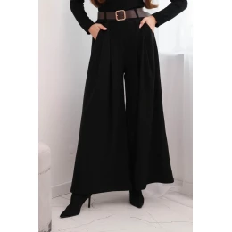 Dámské kalhoty s širokými nohavicemi a pásem černé