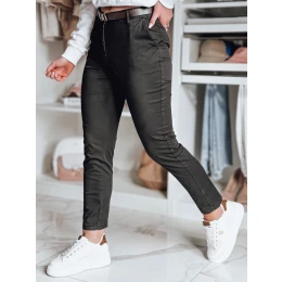 Dámské kalhoty slim fit s páskem LINESKA khaki FashionStreet UY2576