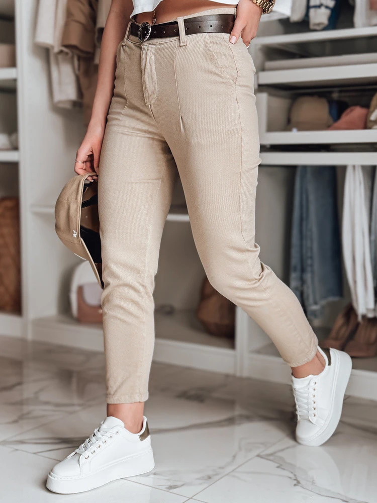 Dámské kalhoty slim fit s páskem TAIRONIK tmavě béžové FashionStreet UY2545