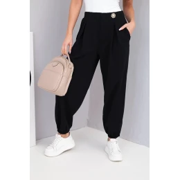 Dámské kalhoty z bavlny s vysokým pasem a ozdobným knoflíkem černé