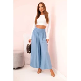 Dámské kalhoty z viskózy s elastickým pasem z denimu