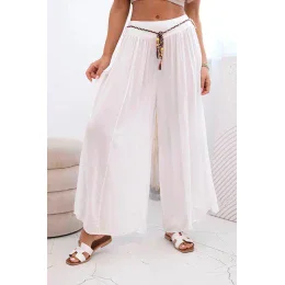 Dámské kalhoty z viskózy se širokými nohavicemi bílý