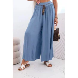 Tyto výjimečné dámské široké kalhoty z viskózy jsou skvělou volbou pro ženy, které si cení pohodlí a stylu. Ušité z lehké, prodyšné látky krásně sedí na postavě a zajišťují pohodlí po celý den. Široké nohavice jim dodávají módní, letní charakter a přiložený pletený pásek přidává originální kouzlo a zdůrazňuje pas.