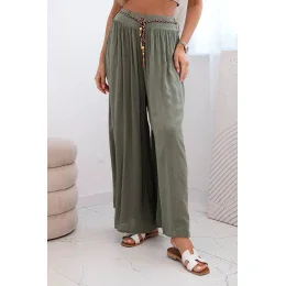 Dámské kalhoty z viskózy se širokými nohavicemi khaki