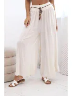 Viskózové kalhoty se širokými nohavicemi světle béžová