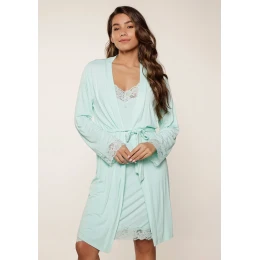 Učiňte lenošení bez námahy šik. Objevte kouzlo a eleganci tohoto kimona vyrobeného z bambusu. Kimono má dlouhé rukávy, ladící pásek s krajkovými detaily a délku ke kolenům. A samozřejmě, je nesmírně pohodlné. Ideální volba pro stylové a komfortní chvíle odpočinku.