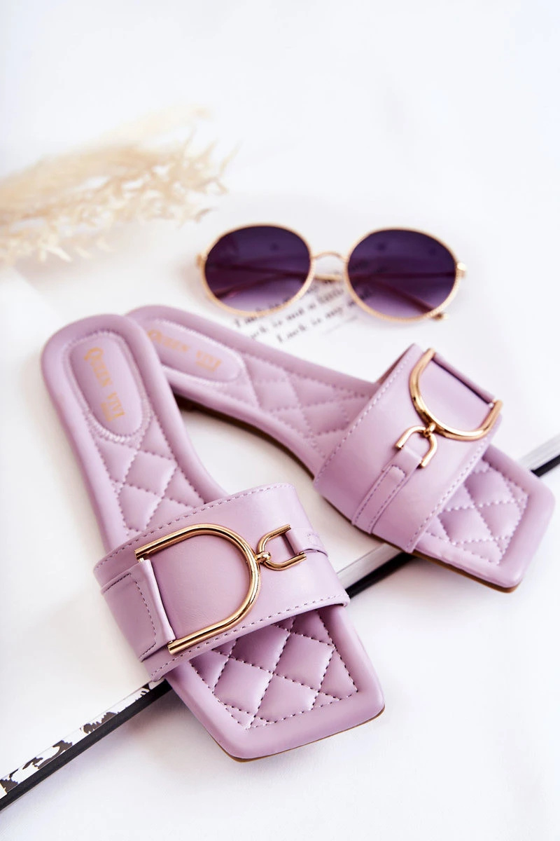Dámské klasické kožené pantofle s zdobením fialový Shilla