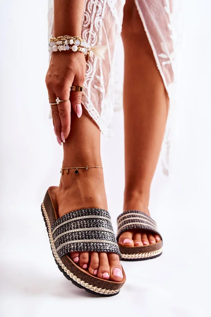Dámské klasické pantofle s řetízkem Černá Maddy