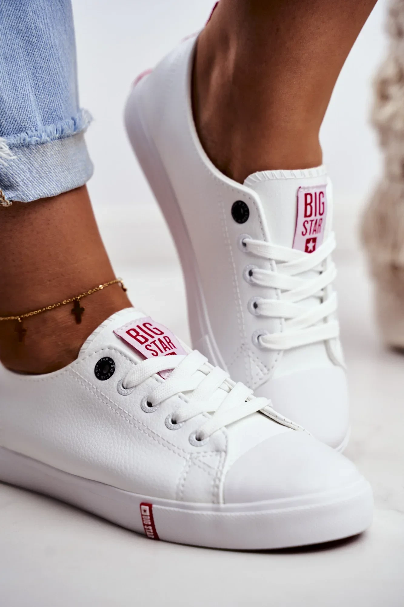 Model Big Star je ideální pro ženy, které milují jednoduchý styl a komfort. Obuv je doplněna výraznými červenými prvky, které dodávají botám svěží a sportovní vzhled. Kvalitní gumová podrážka poskytuje dobrou přilnavost a stabilitu, zatímco klasické šněrování zaručuje perfektní přizpůsobení noze.