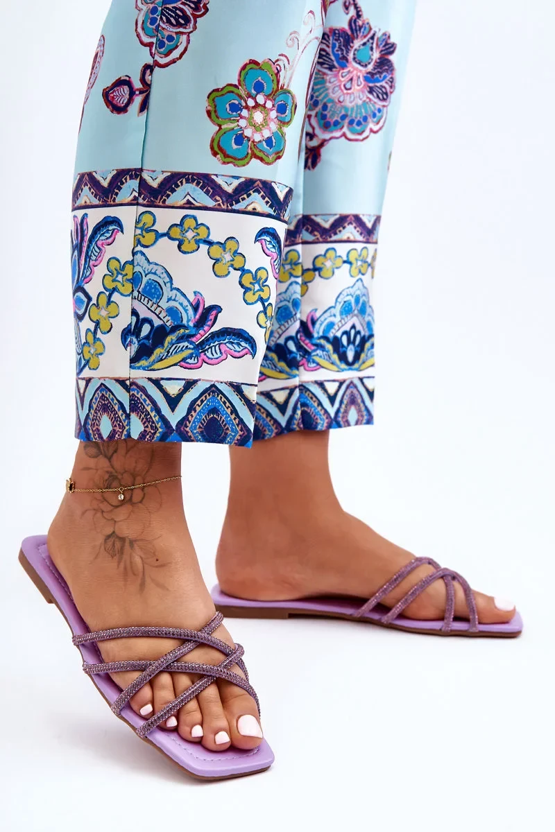 Elegantní dámské sandály jsou vyrobeny z látky. Popruhy na přední straně se proplétají a jsou ozdobeny kamínky imitujícími křížky. Sandály mají měkkou a pohodlnou vložku vyrobenou z eko kůže. Tato obuv je ideální pro mnoho stylů v horkých dnech! Musíte ji mít! Při výběru velikosti se řiďte tabulkou velikostí.