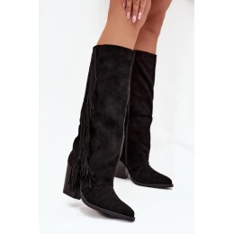 Dámské Kopytové Boty S Třásněmi Na Podpatku Černé Tivara