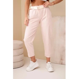 Dámské kordové kalhoty s páskem tmavě pudrově růžové