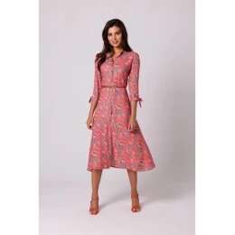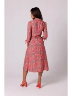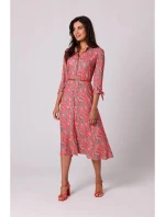 Dámské košilové šaty na knoflíky - model 1 B259 Tmavě oranžová se zelenou vzor - BeWear