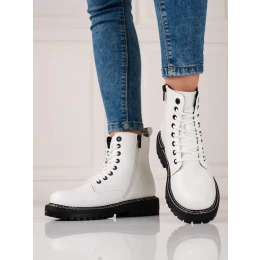 Dámské kotníčkové boty na plochém podpatku KK274539 Bílá s černou - BIG STAR