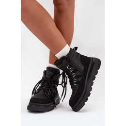Boty s koženým nápletem jsou skvělou volbou na zimní dny. Umístěné na platformě poskytují pohodlí a stabilitu během chůze. Tento model je vybaven šněrováním a dalším zipem, co usnadňuje obouvání a přizpůsobení se noze. Vnitřní zateplení boty zaručuje teplotu i v mrazivých dnech. Stylový střih z nich činí skvělé doplnění každé zimní stylizace.