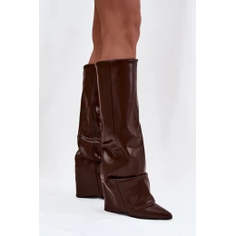 Dámské kotníkové boty Elivira se zahnutou manžetou na sloupku – čokoládové
